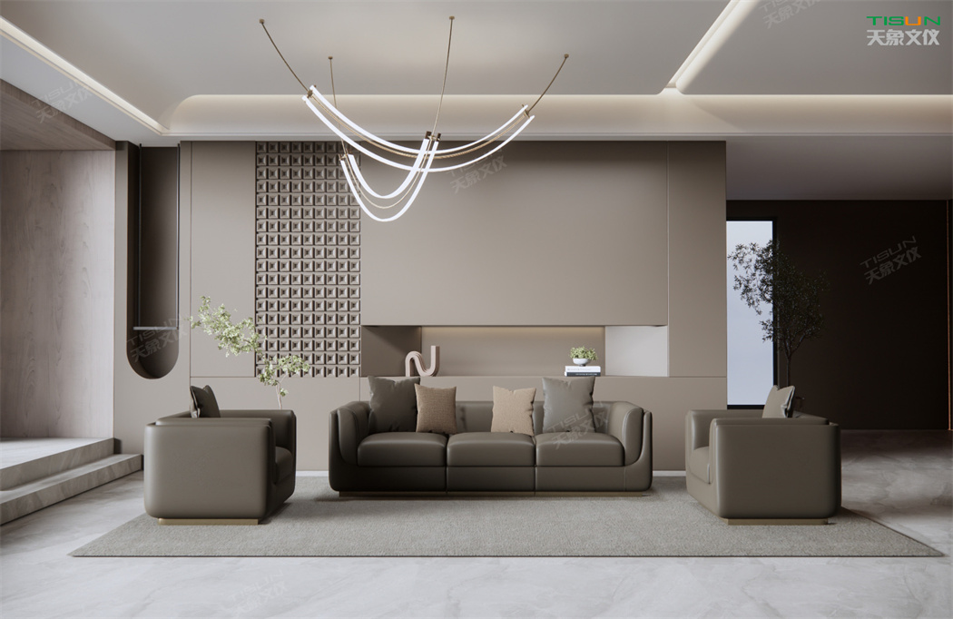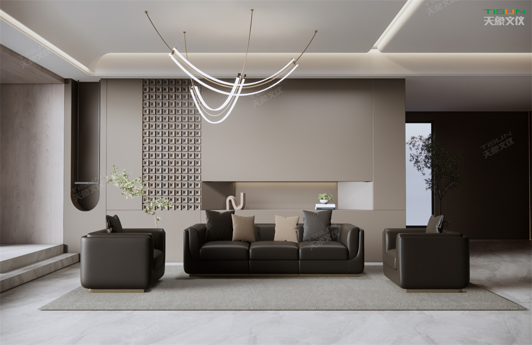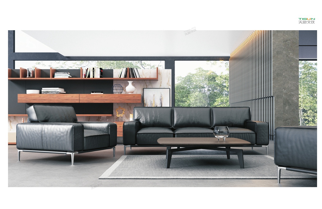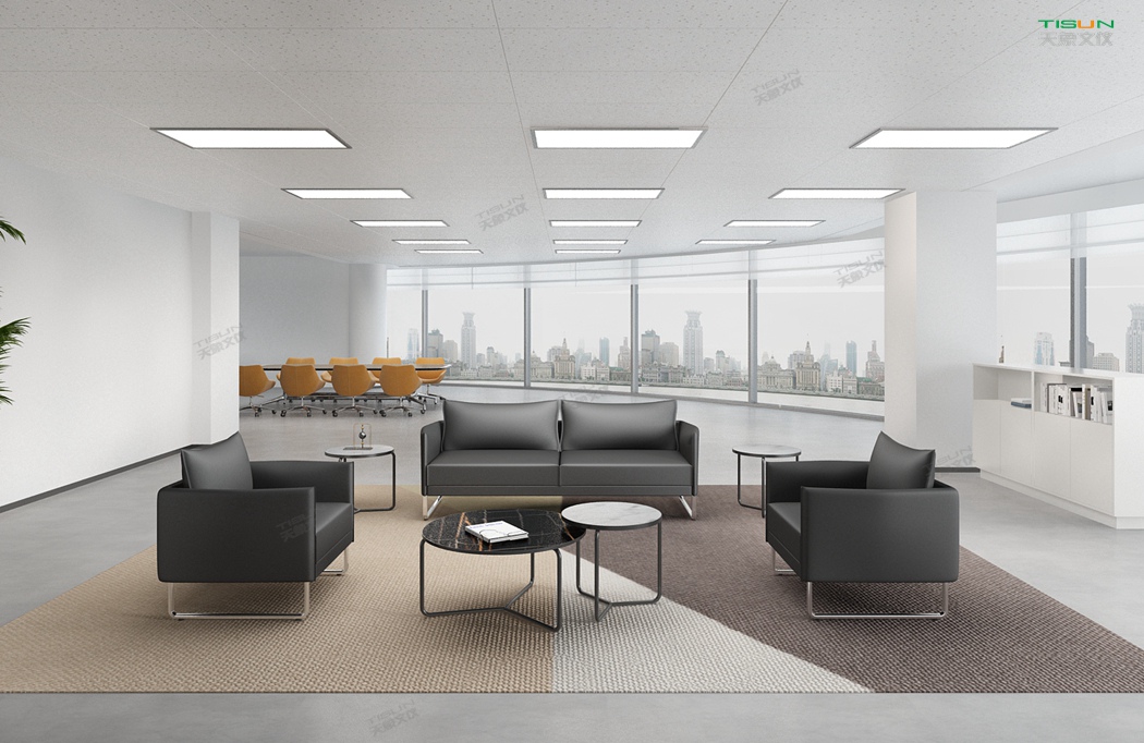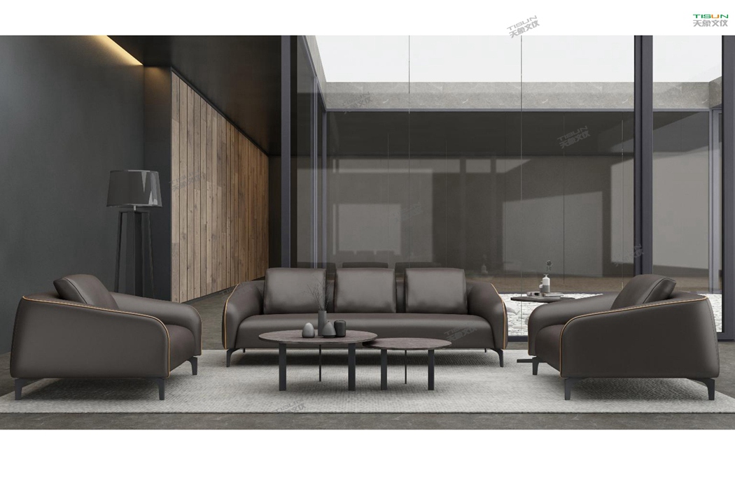 高級的辦公沙發在設計中運用真皮材質及考究的造型,體現主人對工作及生活的至高追求,同時凸顯辦公空間的高雅品質。