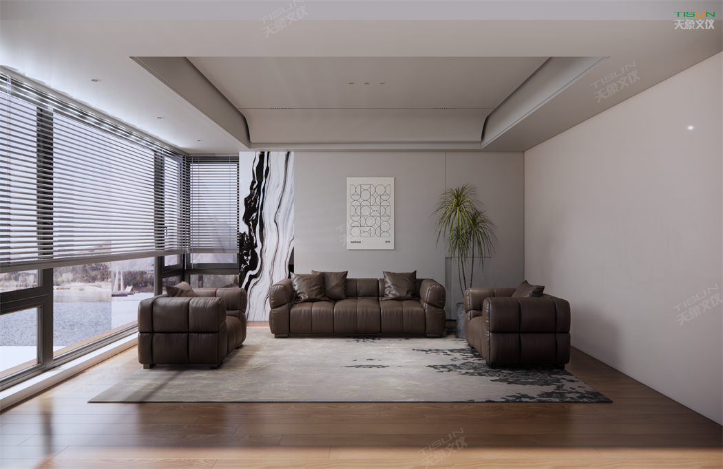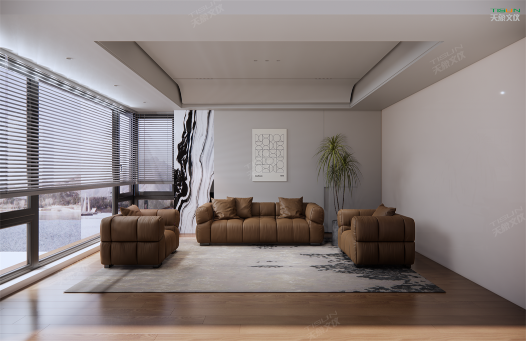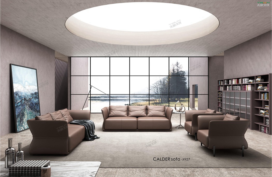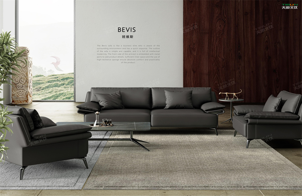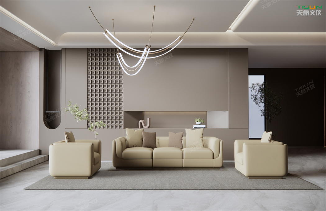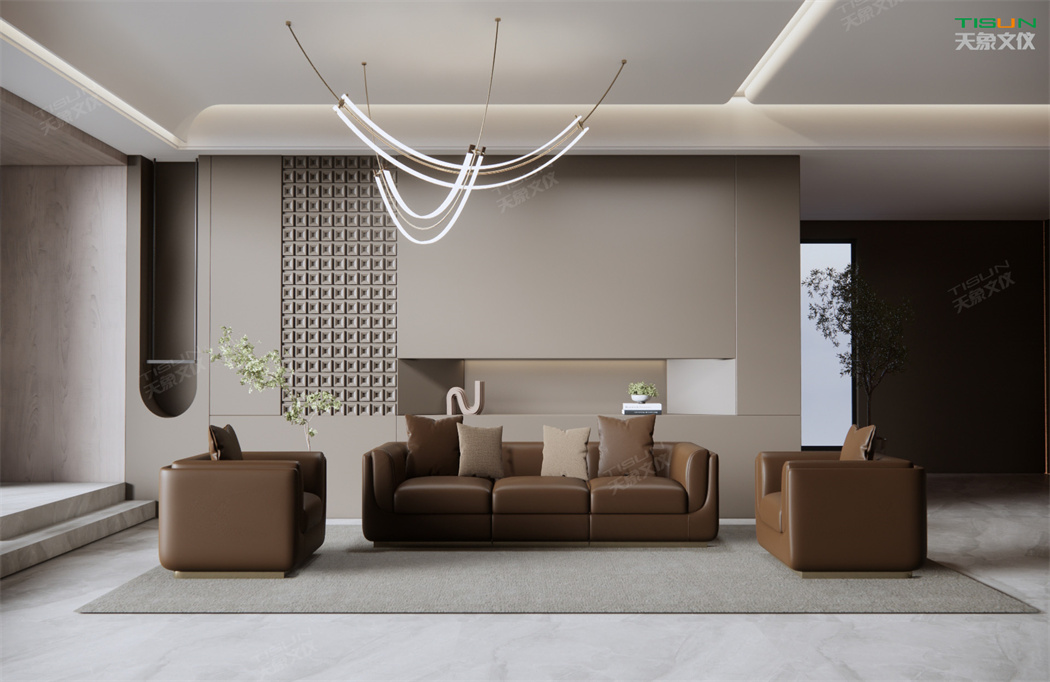 高級的辦公沙發在設計中運用真皮材質及考究的造型,體現主人對工作及生活的至高追求,同時凸顯辦公空間的高雅品質。