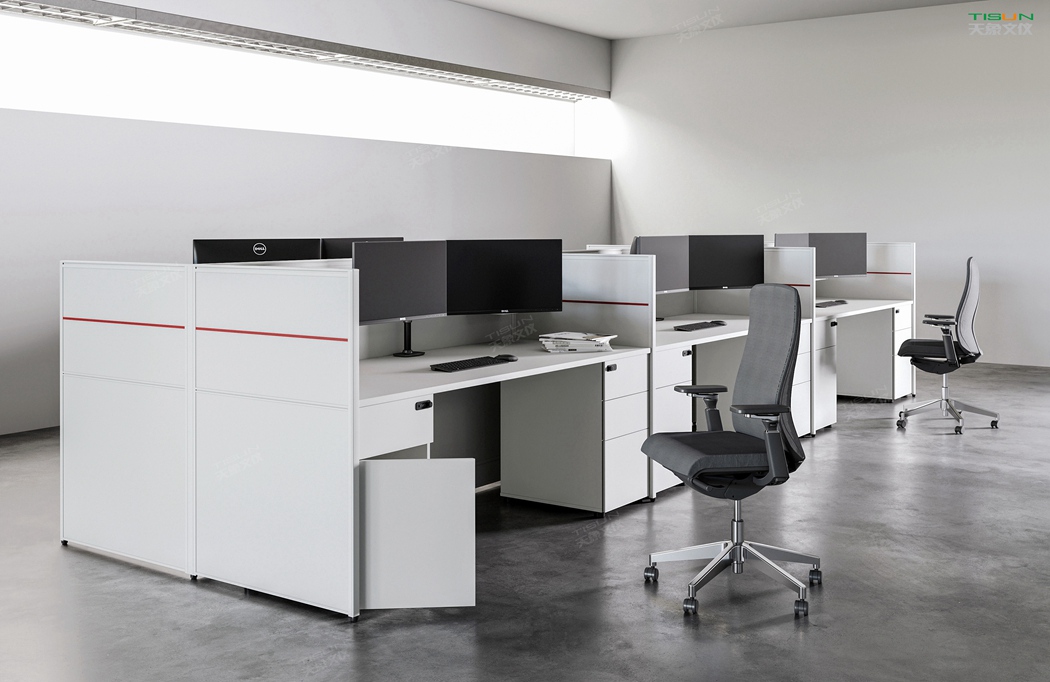 境由心造,思想領域超越于空間,員工桌簡約的設計展現了現代都市感,真心的設計,帶著一種生活的準確度,精確的敲擊,在工作與生活中完美呈現。這種輕松、和諧、明快、環境趨向人格化,帥氣十足,專業可靠。