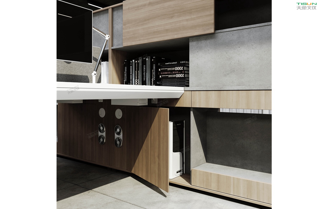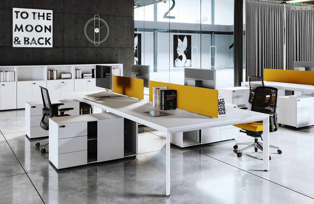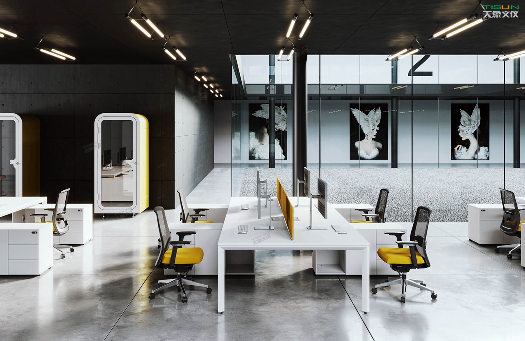 境由心造,思想領域超越于空間,員工桌簡約的設計展現了現代都市感,真心的設計,帶著一種生活的準確度,精確的敲擊,在工作與生活中完美呈現。這種輕松、和諧、明快、環境趨向人格化,帥氣十足,專業可靠。