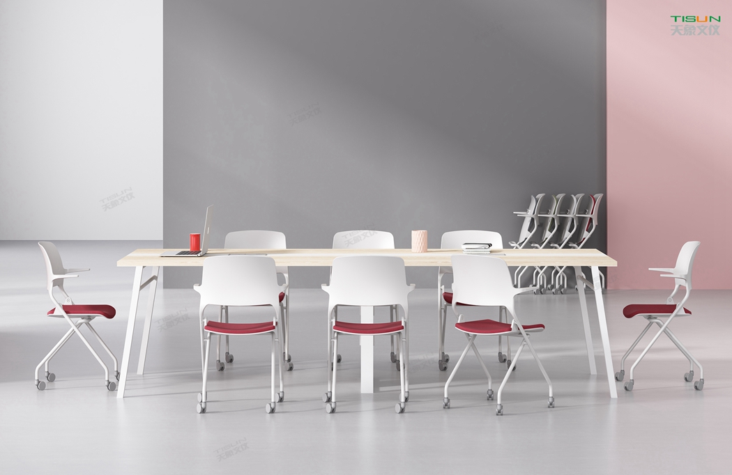 The training chair that can be moved and combined at will, the line is elegant and beautiful, the design is natural and unrestrained and fashionable, from colour, design, down to the mechanism of the chair, can provide efficient conference communication for you, more accord with the need of modern enterprise development.